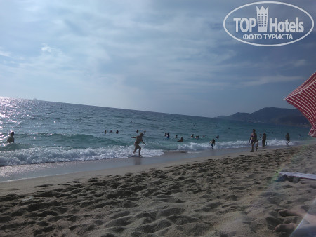 Как ранее упоминалось, на другой стороне дороги находится пляж N 16 с расчищенным от плит и камней широким входом в море.Такой детский пологий вход в море мало где имеется в этом районе Аланьи. На пляже есть бесплатные помещения для переодевания, туалет, душ с ногомойкой и платные услуги: лежаки, зонтики, бар. Стоимость двух лежаков с матрасом, столика и зонта на день составляет 400 лир, при этом включён в стоимость шустрый интернет по вайфаю. Можно обойтись и одним зонтом за 100 лир в день, и вам его воткнут в любое место песочно- галечного пляжа. Наконец можно вообще ничего не платить, придя на пляж с собственным зонтиком и полотенцем, благо пляж позволяет лежать на нем, не получая вмятин в филейных частях тела.За море тоже платить не надо, поэтому под вечер на пляж приходят турецкие семьи с детьми, которые обычно не столько плавают, сколько плещутся у берега.