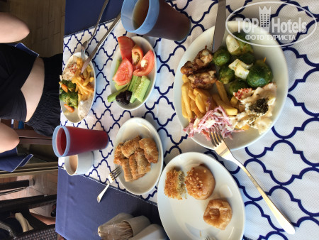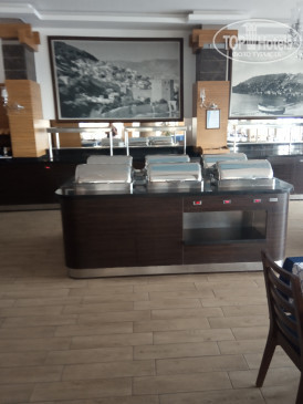 Теперь собственно об основной работе, так как была ещё дополнительная, о которой вы возможно узнаете в конце отзыва , если мне не надоест его писать, а вам, уважаемые, читать. Сначала нужно было основательно поработать головой, слегка помогая руками, в прямом (ртом) и переносном (извилинами) смысле на завтраках, обедах и ужинах.То есть нужно сначала выбрать из большого ассортимента блюд, что бы такое положить на тарелку, а потом все это ещё и съесть, что бывает весьма сложно, особенно первое время по причине природной человеческой жадности. В меню присутствовали кроме гарниров из овощей, макарон, картошки и т.п. только курица, баранина и говядина, при этом мясо африканского страуса или севиче из тунца ни разу не подавали. На десерт были разные фрукты: яблоки, груши, абрикосы, сливы , апельсины, бананы, дыня, арбуз (опять же питахайи и маракуйи не было) и разные сладости, необходимые для поддержания кондиционной плавучести: пирожные, суфлюшки, тортики и т.п. Лично мне очень понравилась запеченая тыква с орешками. Запивать все это можно было соками из автомата (апельсиновый, вишневый, ананасовый), а также колой, фантой, вином ( красное+) и пивом( хорошее!), ну и напоследок чаем и автоматным кофе ( капучино +). При этом в ресторане всегда есть свободные столики и нет никаких очередей за едой и барными напитками.